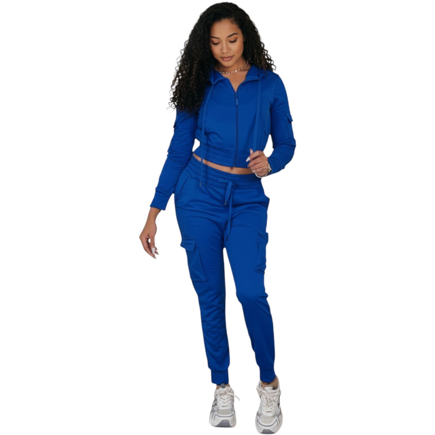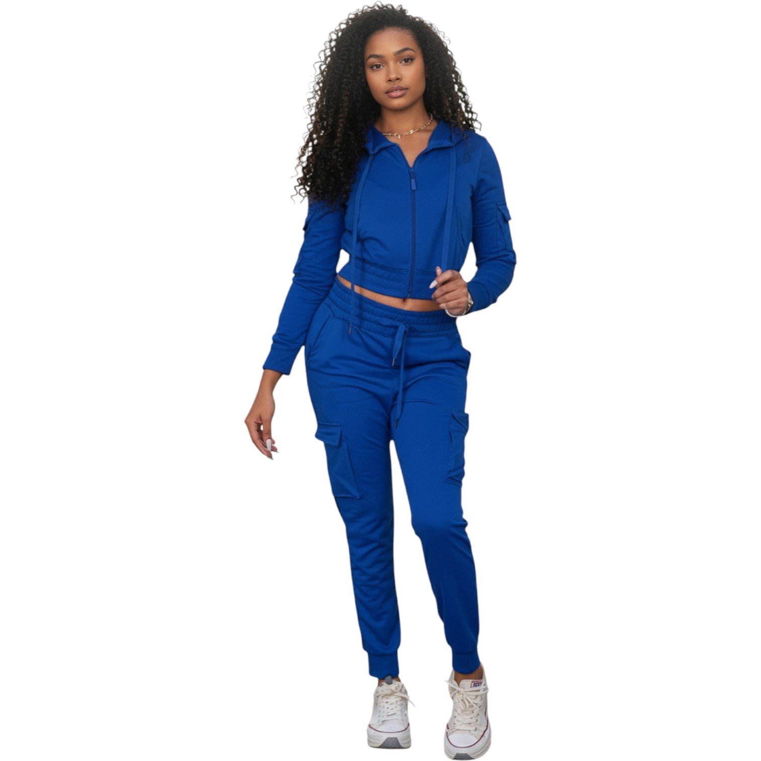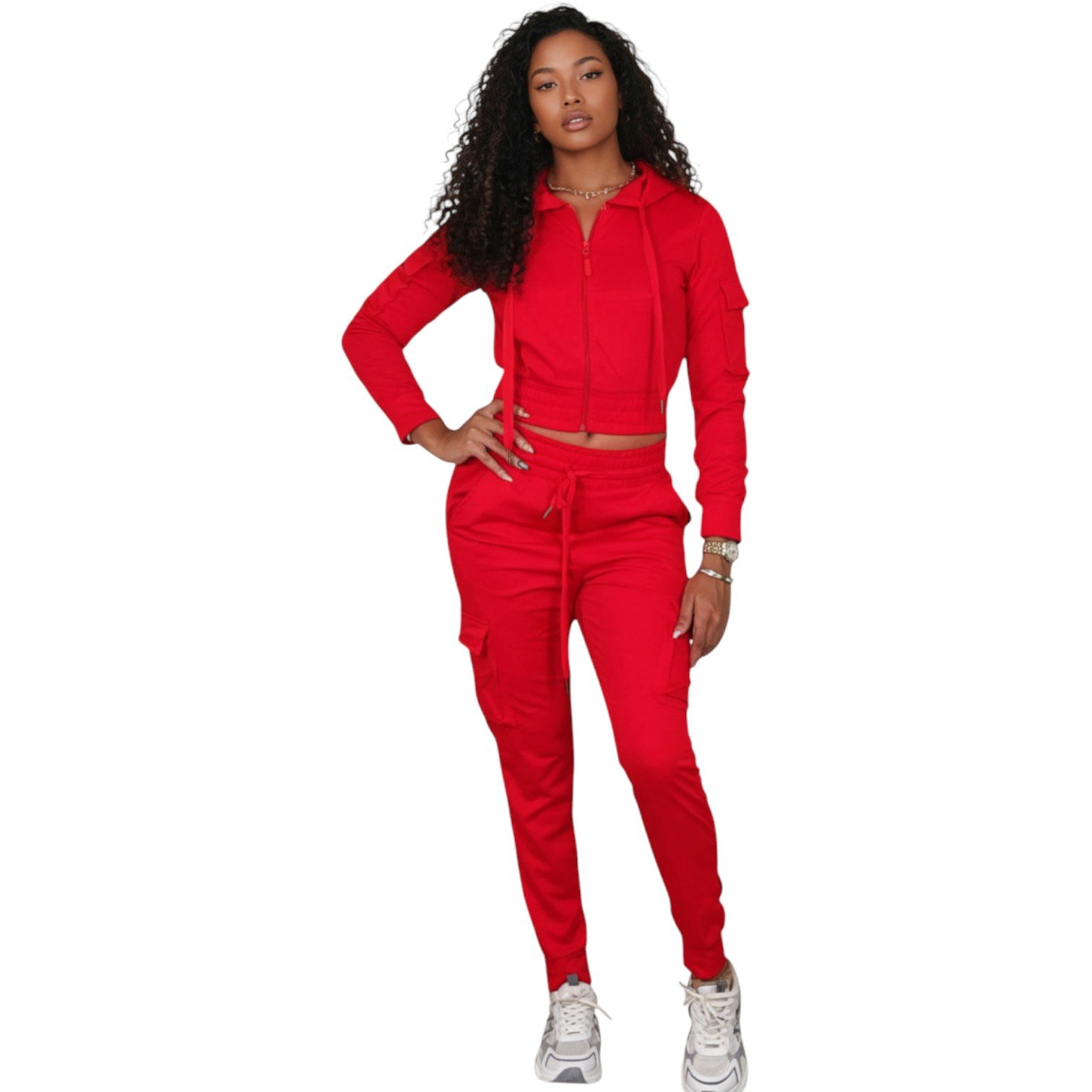Elevate your everyday style with our Women’s Luxe Zip-Up Tracksuit Set, designed for comfort, confidence, and versatility. Featuring a cropped zip-up hoodie paired with high-waist cargo joggers, this set delivers a flattering fit with a sporty edge.