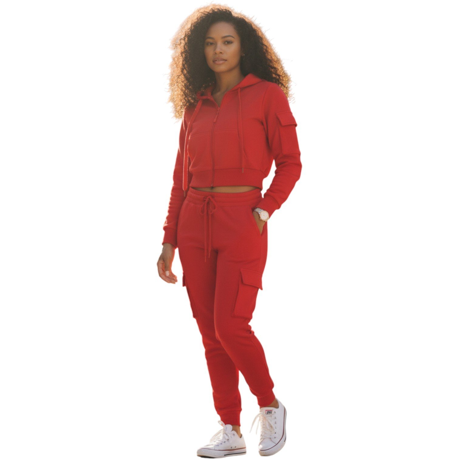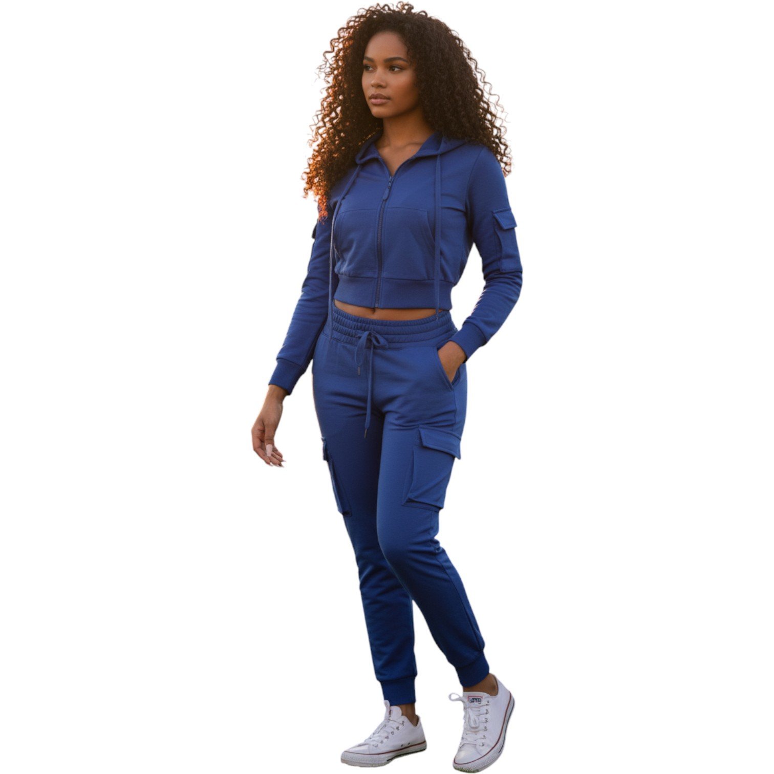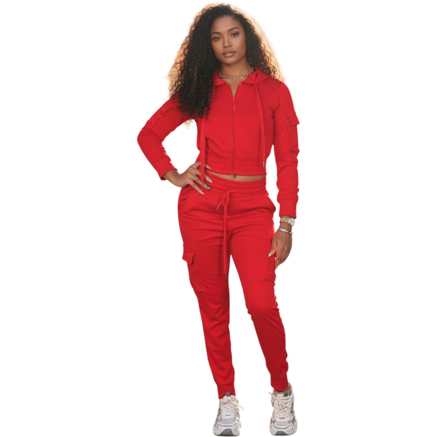 Elevate your everyday style with our Women’s Luxe Zip-Up Tracksuit Set, designed for comfort, confidence, and versatility. Featuring a cropped zip-up hoodie paired with high-waist cargo joggers, this set delivers a flattering fit with a sporty edge.